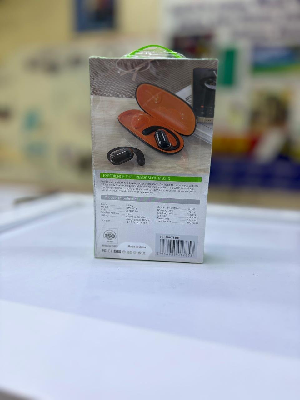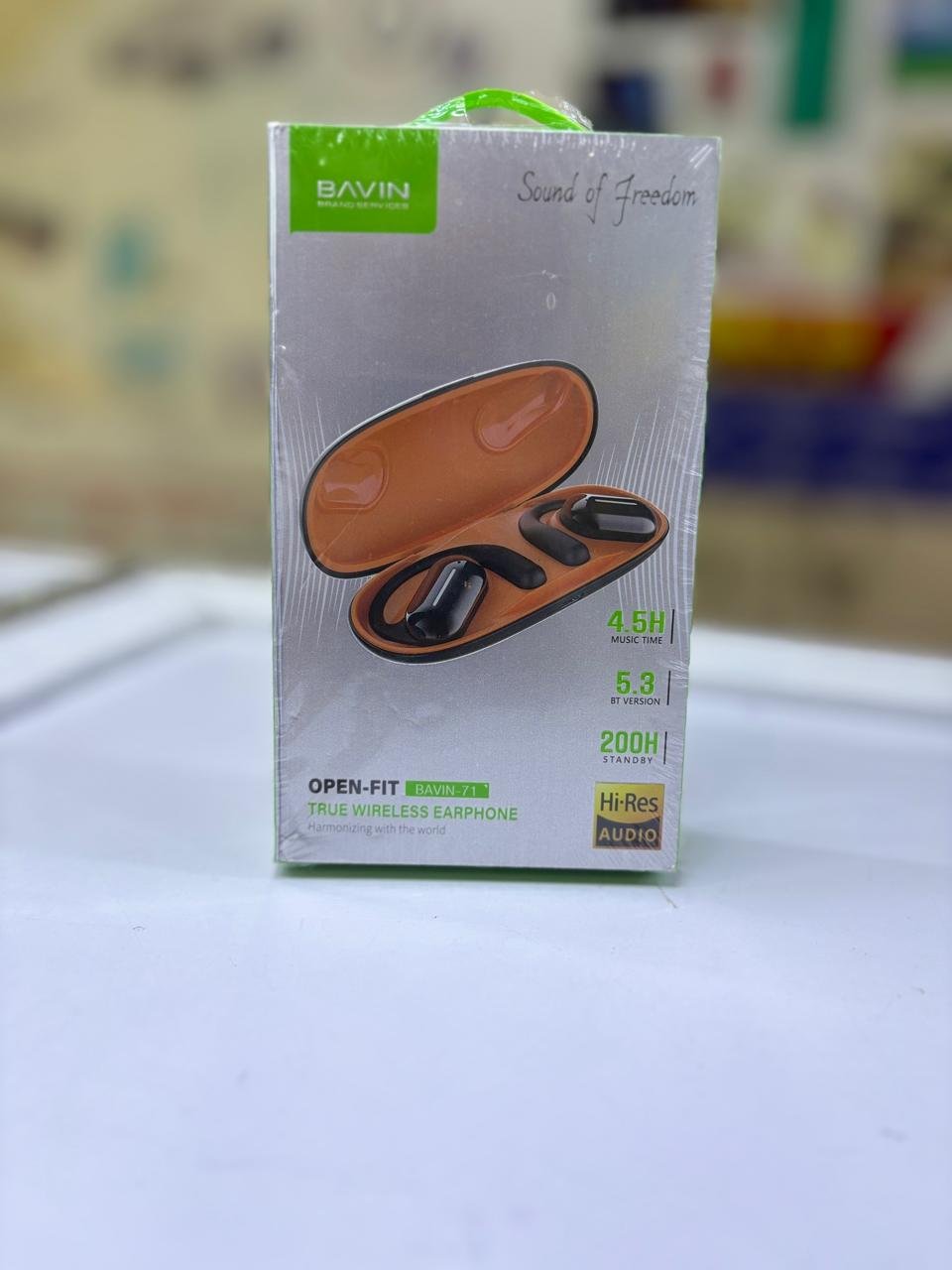 The BAVIN BA71 Open-Fit TWS Earbuds are open-ear wireless headphones designed for comfort and environmental awareness. They use air conduction technology to deliver audio without plugging the ear canal.